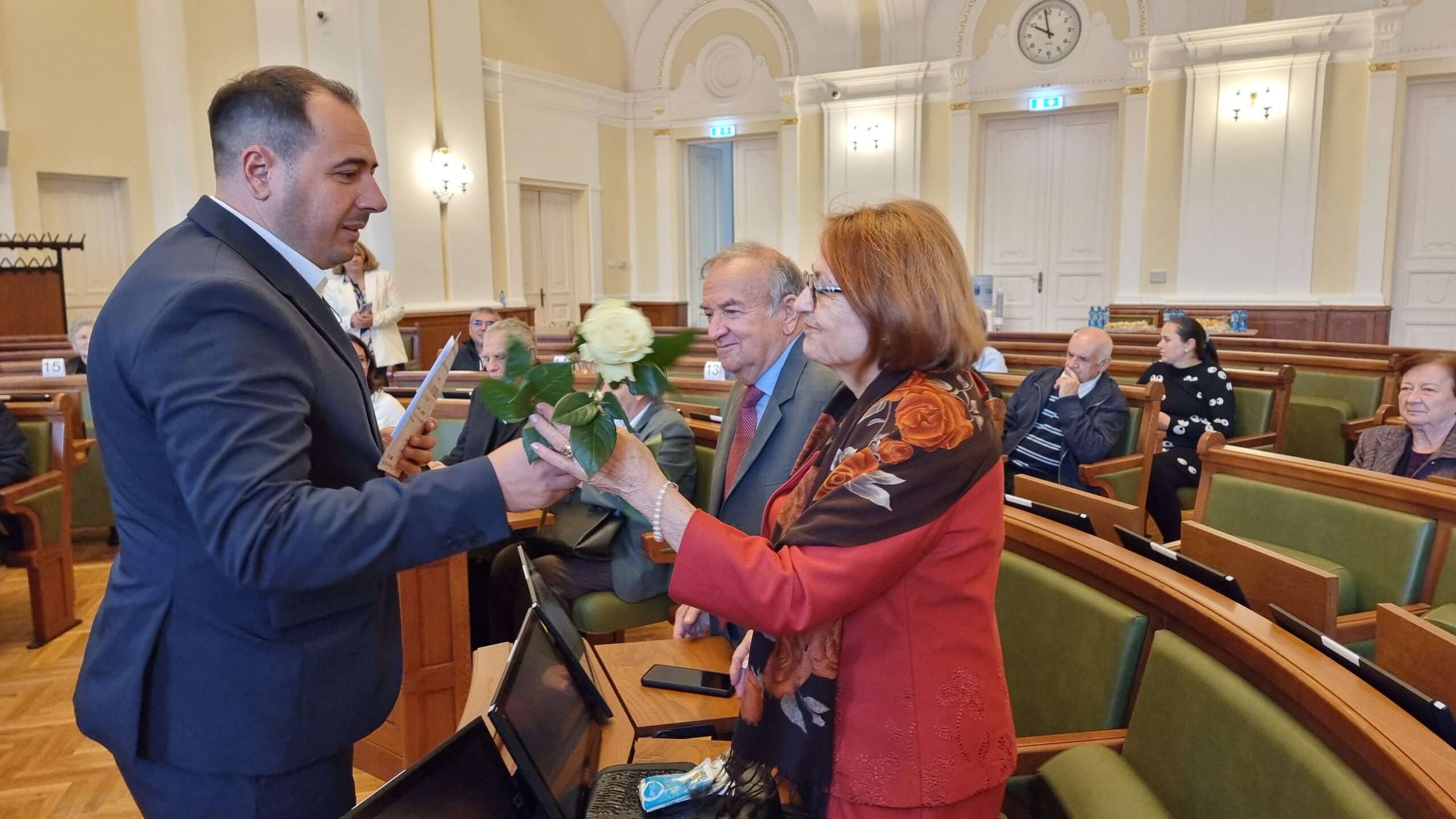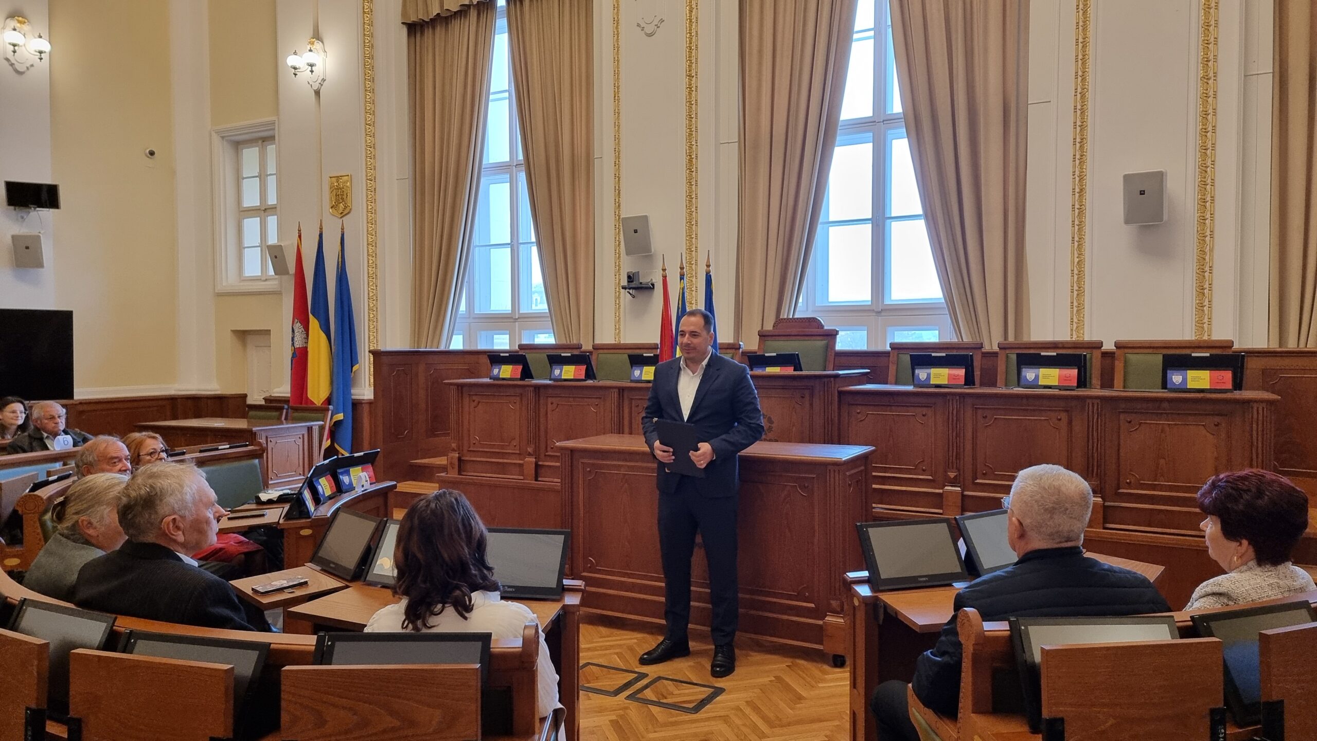 „Kedves ünnepelt, tisztelt családok, azért vagyunk ma itt, hogy egy különleges eseményt, a maradandóság szimbólumát ünnepeljük: az Aranylakodalmat. Az 50 év házasság nem csupán rendkívüli teljesítmény, hanem az odaadás, a kölcsönös tisztelet és a türelemmel, bölcsességgel és áldozatokkal épített élettörténet élő bizonyítéka is. Önök példát mutatnak mindannyiunknak – a fiatalabb generációknak, akiknek meg kell érteniük, hogy az igazi boldogság a közös élet felépítéséből, a közös pillanatokból, a közös örömökből, de a türelemmel és szeretettel leküzdött kihívásokból is fakad. Köszönöm mindannyiuknak, és szívből gratulálok ehhez a rendkívüli teljesítményhez” – mondta Teofil Filimon alpolgármester.