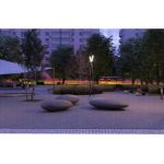 Proiectul propune și crearea a două spații de joacă, unul având ca strat superior covorul de cauciuc și altul de nisip. În incinta pieței se propun 8 platforme de lemn, cu rol de stat în suprafața cumulată de aprox. 231,4 mp.