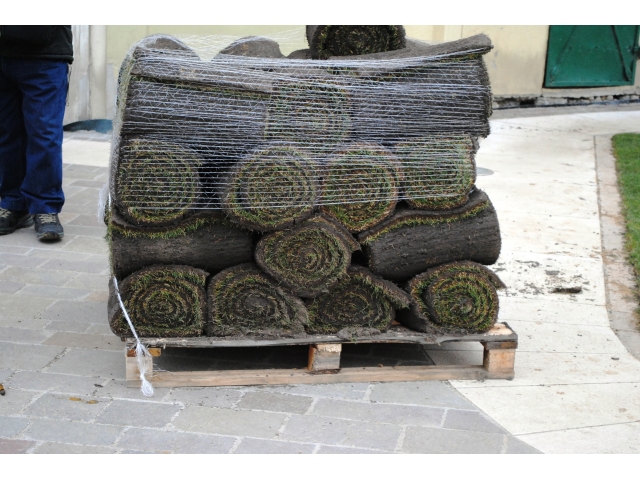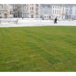 A început montarea rulourilor de gazon în Piața Unirii