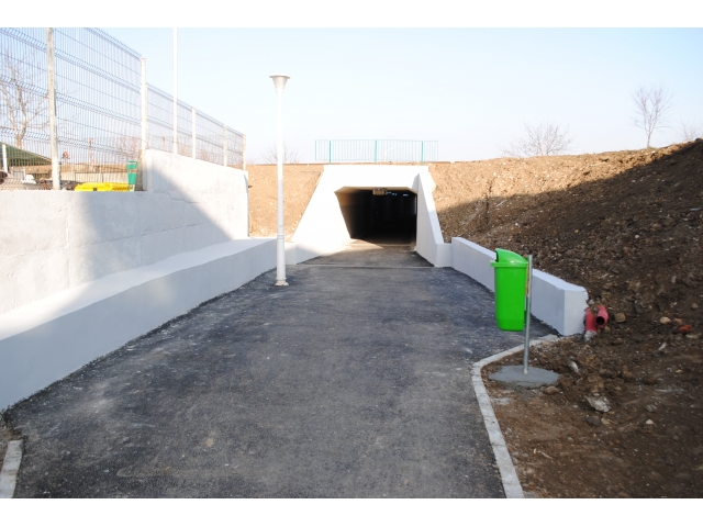 Lungimea totală a pasajului pietonal este de 55 m, acesta având o lăţime de 3 m şi o înălţime de 2,40 m. Valoarea lucrărilor a fost de 1.252.572, fără TVA. Lucrările au fost executate de SC Abed Nego SRL iar proiectantul lucrării a fost SC Aquacons SRL.
