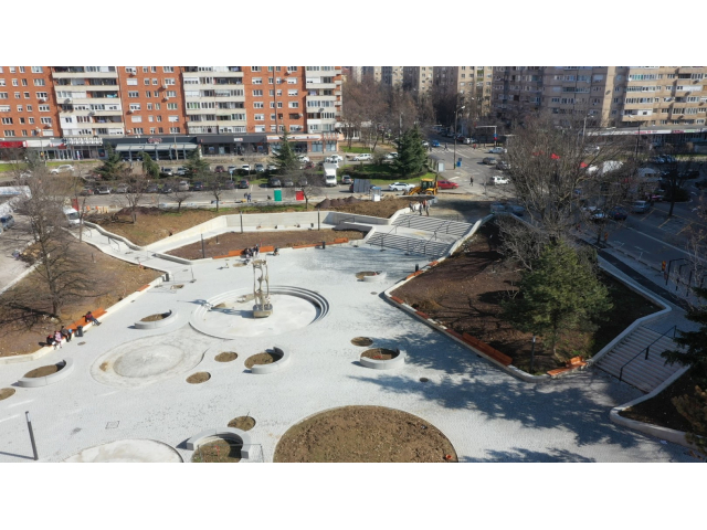 Amenajarea piațetei, în suprafață de aproape 10.000 de mp, se apropie de finalizare, stadiul lucrărilor fiind în acest moment de 90%.