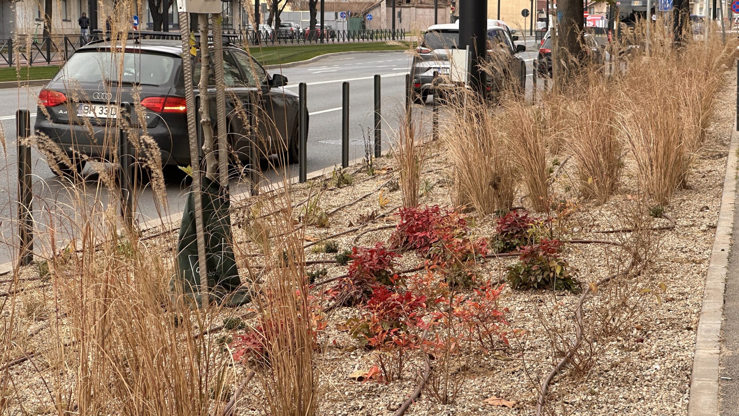 Conceptul de amenajare urmează modelul aplicat în proiecte similare de pe Calea Aradului și Bulevardul Decebal, punând accent pe utilizarea unor specii decorative rezistente la stresul urban, cu necesar redus de întreținere și cu înflorire eșalonată din primăvară până toamna. Printre speciile utilizate se numără Lonicera nitida, Viburnum davidii, Mahonia aquifolium, Stipa tenuissima, Miscanthus sinensis, Geranium ibericum, Salvia nemorosa, Echinacea, Rudbeckia, Euphorbia și Campanula.