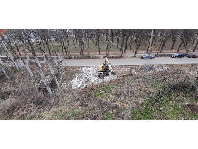 După demolarea construcției, s-au realizat zidurile de sprijin către strada Olteniei, s-au făcut lucrările de canalizare pluvială, s-a asfaltat platforma necesară parcării, s-au amenajat scuarurile și au fost marcate locurile de parcare.