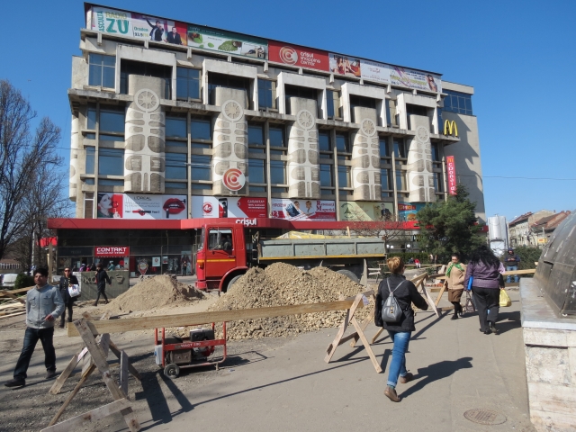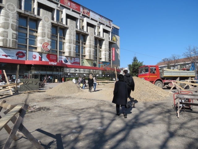 La începutul lunii martie au demarat lucrările de reamenajare a piațetei din fața Magazinului Crișul. În prezent, se efectuează lucrările de decopertare a pavajului și cele pentru canalizarea pluvială.
