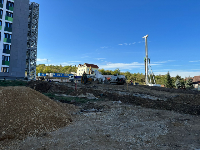 Inginerul Bereczki Tiberiu, reprezentant al grupului de firme, a explicat care sunt etapele construcției: „Lucrările au început. Dorim să terminăm anul acesta partea de sprijin, infrastructura, zona cu piloți de sprijin la ambulatoriu. Vor urma apoi 99 de piloți energetici la adâncime de 11 metri, după care se va realiza fundația efectivă a clădirii, radierul. Ne dorim ca până la finalul anului să terminăm radierul, iar apoi să începem să realizăm structura clădirii. Totodată, și la parcarea supraetajată vrem să depășim cât mai repede faza de radier. Cele două proiecte, parcarea și ambulatoriul sunt similare, ambele având fundație pe piloți. Foreza este deja pe poziție și începe faza de piloți”.