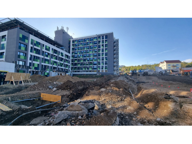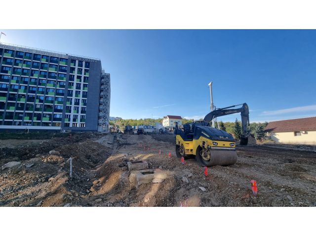 Lucrările din zonă au început cu pregătirea terasamentelor, devierea rețelelor de utilități, asigurarea rezervei de incendiu și a postului de transformare a spitalului.