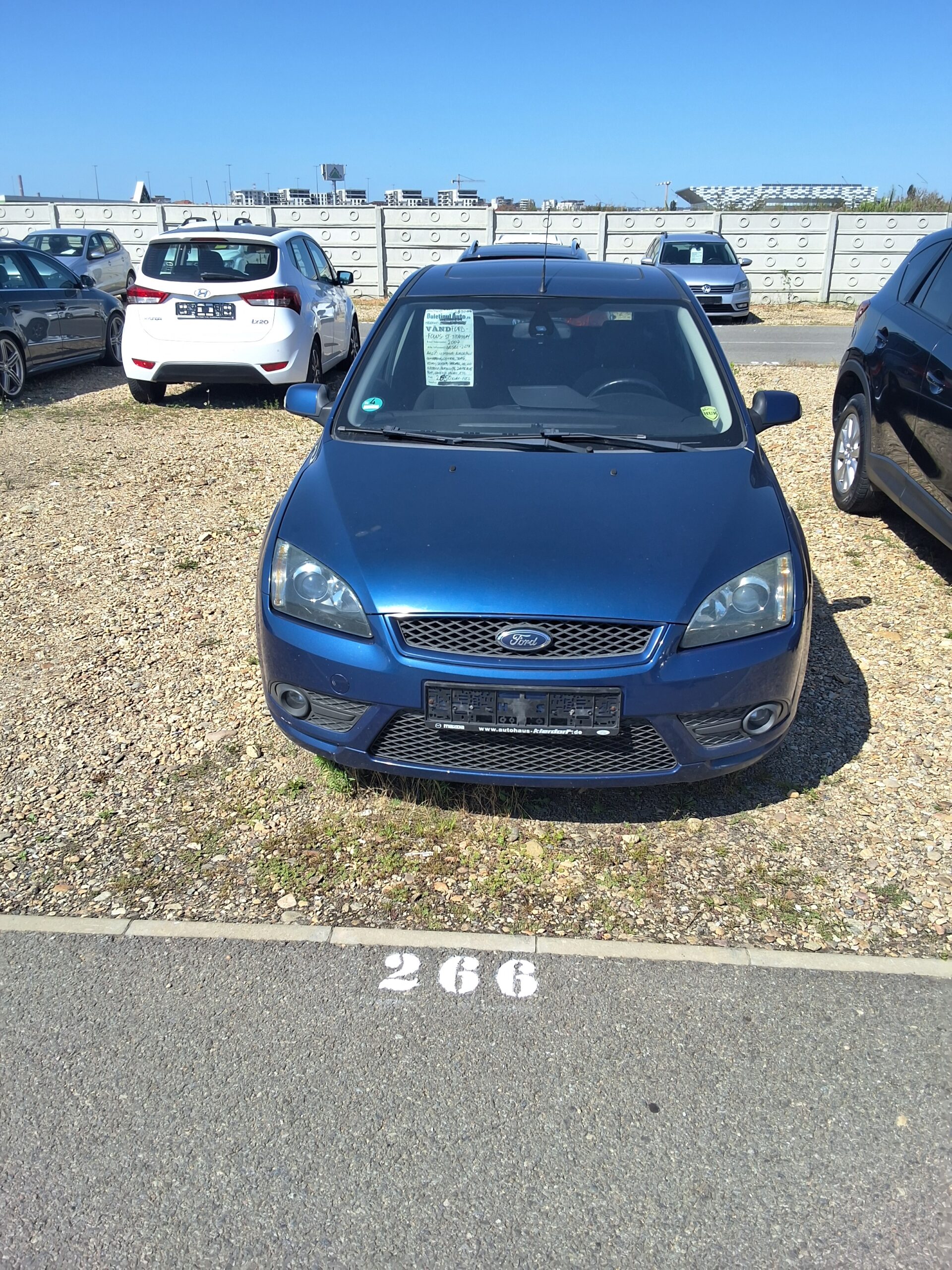 autovehicul marca Ford, de culoare albastră, fără număr de înmatriculare;