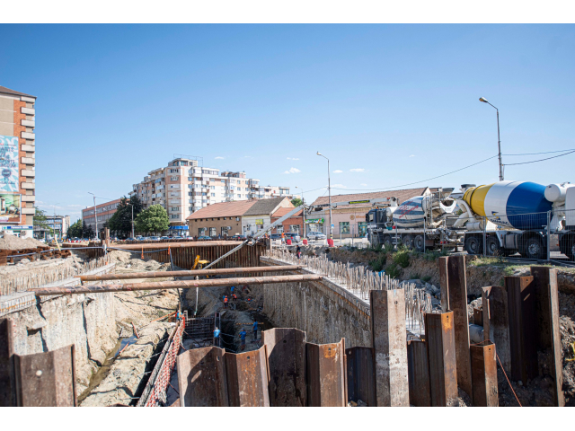 Se lucrează intens, în aceste zile, la pasajul rutier subteran din dreptul Pieței Cetății. Constructorul lucrează la pereții bazinului de retenție a apelor pluviale, bazin situat sub viitorul pasaj. După finalizarea acestuia se va realiza hidroizolația, iar apoi se vor pune predalele peste bazin și va fi turnat radierul din zona acoperită a pasajului. Ulterior se vor turna pereții de etanșare, situați sub grinzile pasajului, iar de săptămâna viitoare se va lucra la armarea rampei dinspre Nufărul. În paralel se lucrează și la devierea rețelelor de utilități și pregătirea amplasamentului pentru începerea lucrărilor la celelalte cinci pasaje rutiere din Centrul Civic.