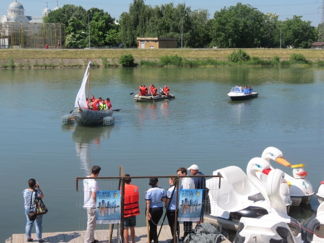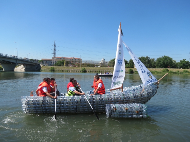 Ambarcaţiunea a fost realizată din peste 5000 de flacoane, având o lungime de 6 metri, fiind lansată la apă în prezenţa reprezentanţilor Prefecturii, Consiliului Local, Poliţiei Locale, precum şi a elevilor şi şcolilor care s-au implicat în proiect.