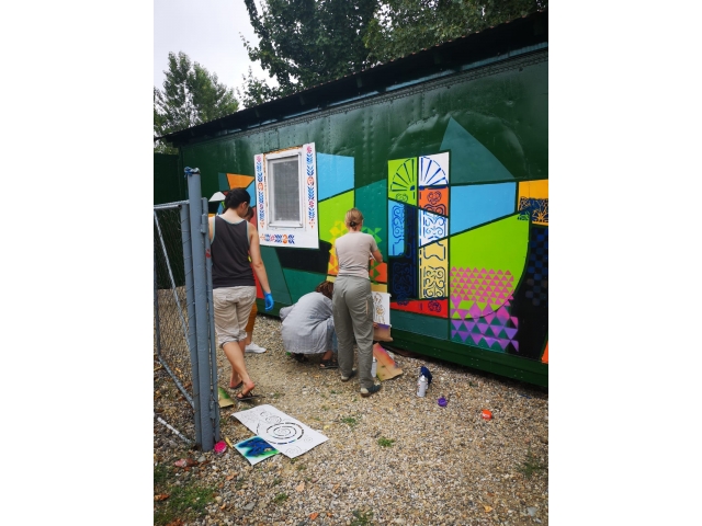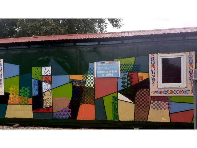 Pornind de la ideea că orice spațiu de locuit trebuie să aibă, pe lângă rolul funcțional, și unul estetic, studenții specializării Arte Decorative, din cadrul Departamentului de Arte Vizuale, Facultatea de Arte Oradea, au decorat partea exterioară a unui container din incinta Centrului Comunitar Gutenberg, folosind o cromatică caldă și dinamică, care va transmite beneficiarilor un sentiment de siguranță și optimism. Coordonatorul proiectului de decorare exterioară este profesor Mihaela Tătulescu alături de studenții anului II – Arte Decorative: Corina Ardelean, Geta Avram, Viorica Pogăceanu, Simona Iancu Modog, Salome Kabai, Beata Kovacs, Cristina Fazekaș și Tamara Szenko.