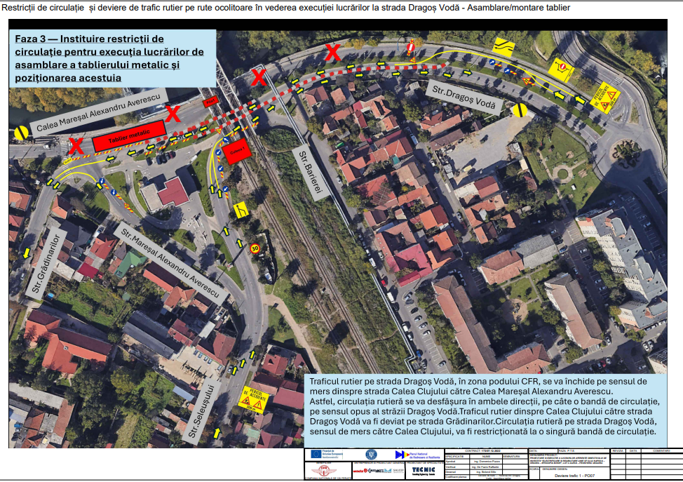 • Circulația rutieră de pe str. Dragoș Vodă spre Calea Mareșal A. Averescu se va devia pe str. GrădinarilorCalea Clujului – Gh. Șincai – str. Mareșal Alexandru Averescu în perioada 4 – 25 august 2025.
