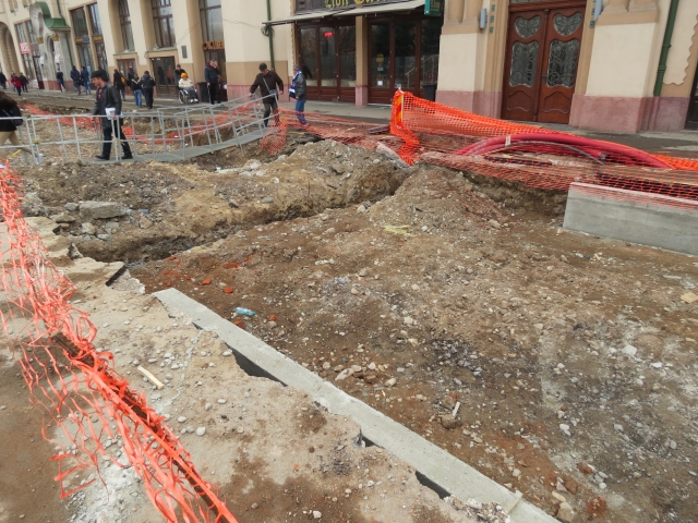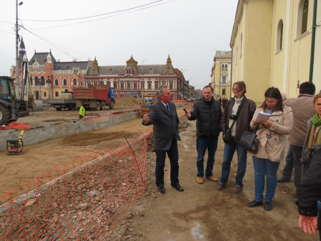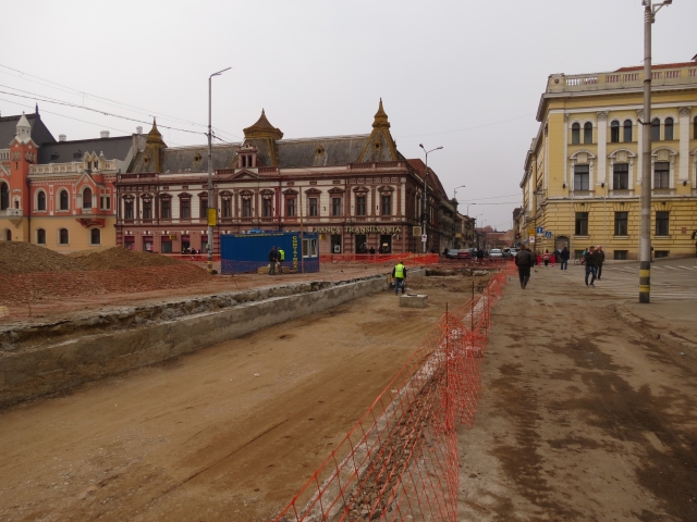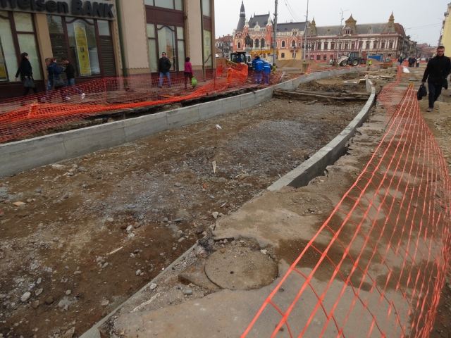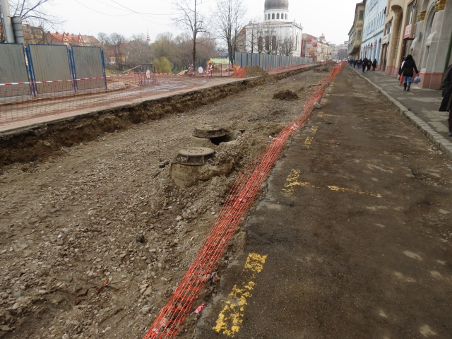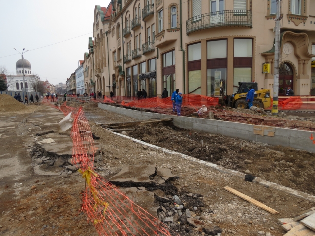 Până acum a fost decopertată zona de asfalt, au fost scoase liniile de tramvai, au fost săpate șanțurile pentru montarea noilor linii de tramvai, iar în cazul în care lucrările vor fi corelate în mod favorabil cu celelalte lucrări, care sunt desfășurate de alte instituții, tramvaiele vor putea circula din nou în centrul orașului începând cu a doua jumătate a lunii mai, promite directorul OTL Istvan Csuzi.