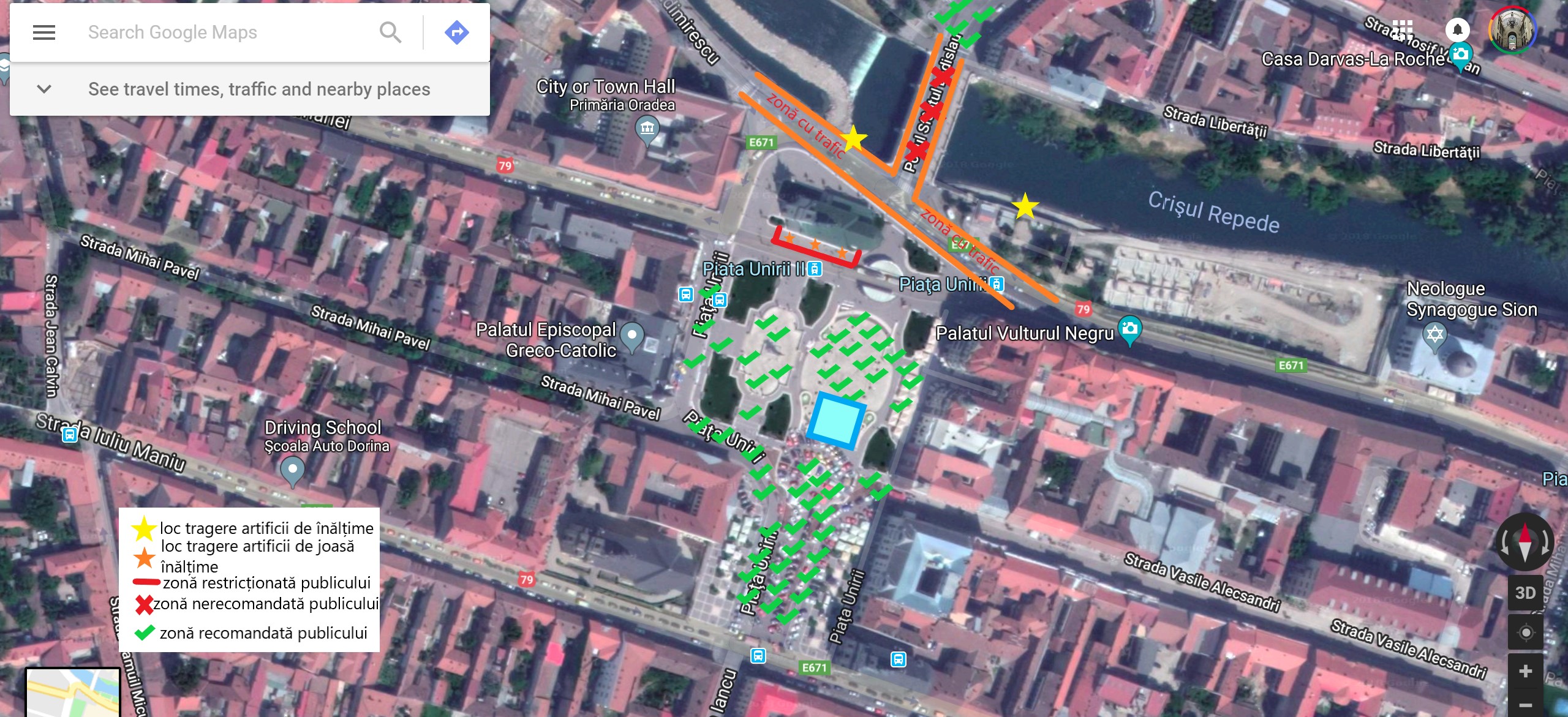 Pentru a ne bucura în condiții de siguranță de acest spectacol frumos, recomandăm publicului, pe care-l așteptăm în Piața Unirii, să se bucure de spectacol în zonele cu cea mai bună vizibilitate, conform planului atașat.