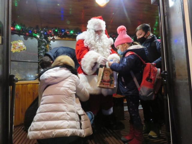 Astfel, tramvaiul de epocă, decorat cu beculețe și globuri de Crăciun a pornit din Piața Unirii, unde, înainte de „îmbarcare”, copiii s-au bucurat de decorațiunile care împodobesc centrul urbei noastre și de fulgii de zăpadă și și-a continuat traseul prin oraș, pe B-dul Magheru, gară și Bdul Decebal.