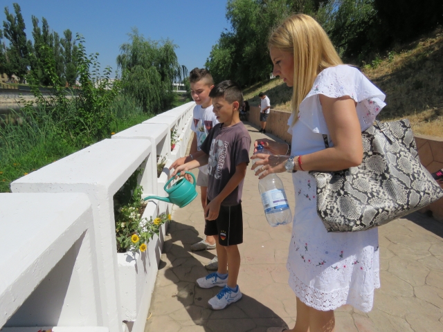 Prima escală a fost pe malul Crișului, unde au udat florile plantate de către Direcția de Asistență Socială Oradea, în cadrul Proiectului „Faleza florilor”. Prin această acţiune, copiii s-au simţit mai aproape de natură şi au aflat mai multe despre îngrijirea plantelor cu responsabilitate, iubire şi dăruire. A fost un bun prilej de a face fotografii și de a ne delecta cu ceva dulce. Traseul nostru cu autobuzul turistic a continuat apoi prin tot orașul, pe la principalele obiective turistice văzute de la înălțimea mașinii Cabrio, cu o nouă oprire în zona centrală, spre bucuria copiilor.