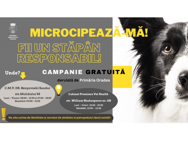 Consultă site-ul instituției – www.oradea.ro sau pagina de facebook dedicată campaniei și află care sunt cabinetele veterinare partenere.