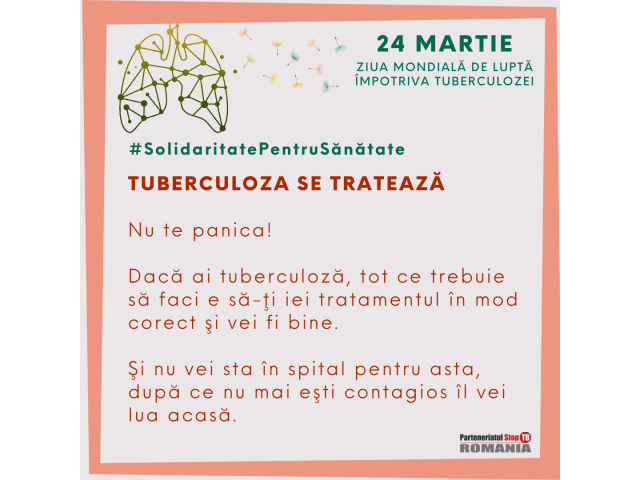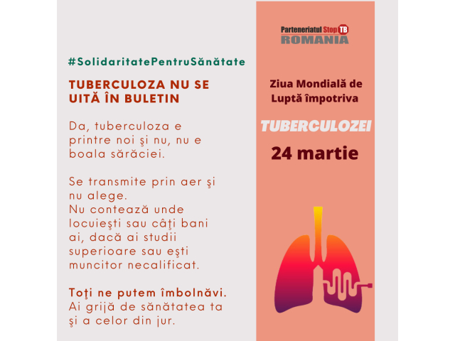 Tuberculoza nu este boala sărăciei, se transmite prin aer și nu alege, nu ține cont de starea materială, dar important este faptul că poate fi tratată și prevenită. Cu cât este mai repede diagnosticată boala și tratată corespunzător, cu atât vindecarea este mai ușoară.