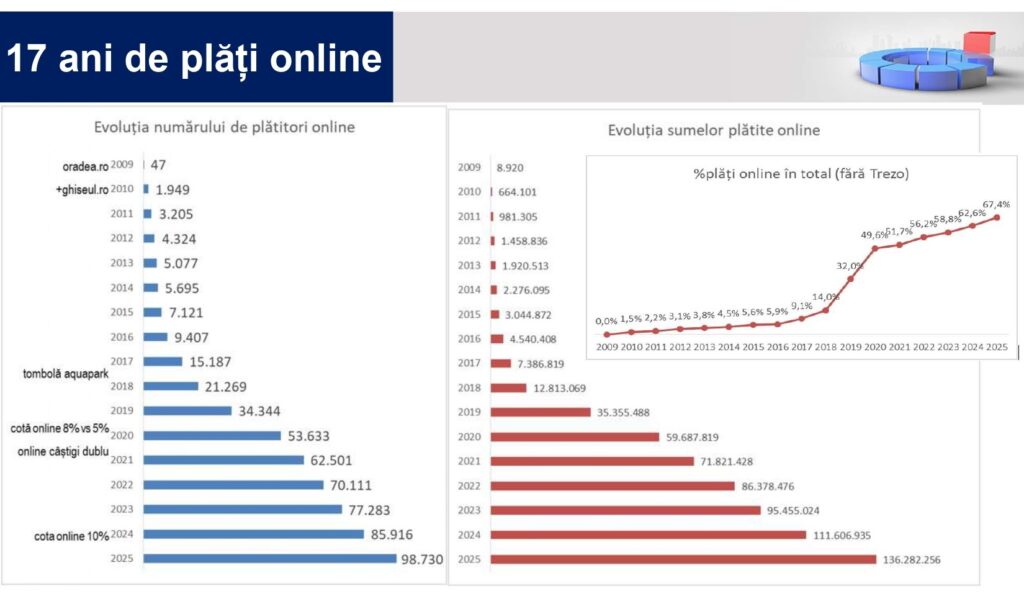 Creșterea spectaculoasă a plăților online — 22% ca valoare și 15% ca număr de contribuabili — arată că digitalizarea este tot mai bine adoptată, în ciuda dificultăților temporare generate de lucrările de modernizare a sediului Primăriei.
