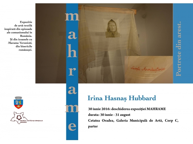 Cu ocazia Zilelor Cetăţii Oradea a fost deschisă, în Galeria Municipală de Artă, Corp C, parter, din Cetatea Oradea, expoziţia de instalaţie textilă „Mahrame. Portrete din arest”, autor Irina Hasnaş Hubbard, artist plastic.