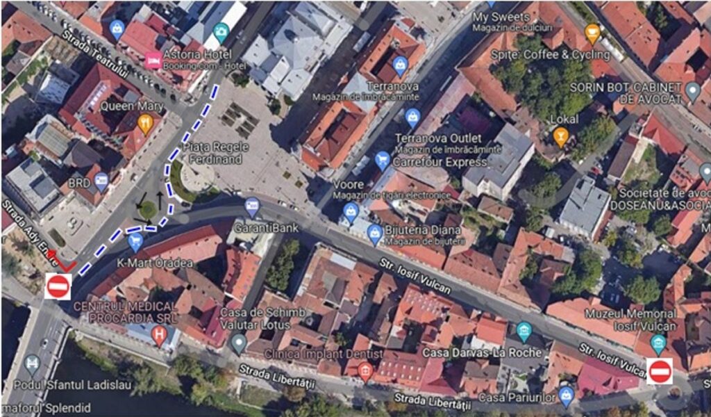 Pentru siguranța și fluidizarea circulației pietonale, traseele de acces și deplasare vor include următoarele străzi și locații: