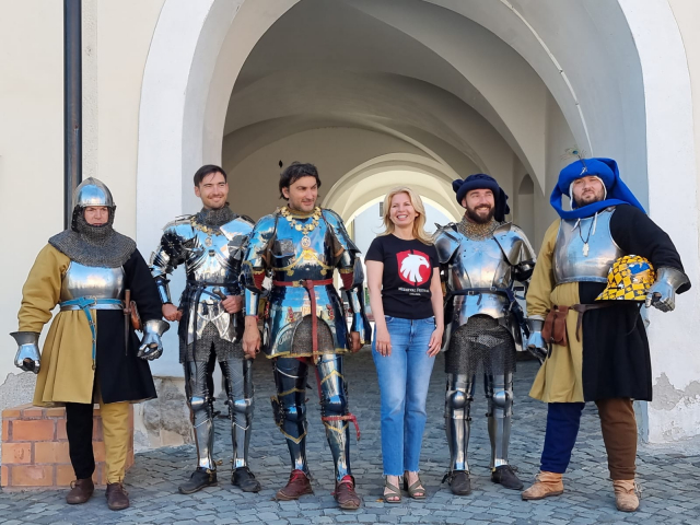 Michael Sade, din partea echipei LesÉcuyers de l’histoire și-a manifestat bucuria de a reveni în Oradea și de a a avea pentru prima datăaici Campionatul European de Full Contact Jousting. De asemenea, a prezentat în detaliu campionatul, echipamentele și armura lui și a colegilor. Armurile acestora cântăresc între 44 kg și 59 kg.