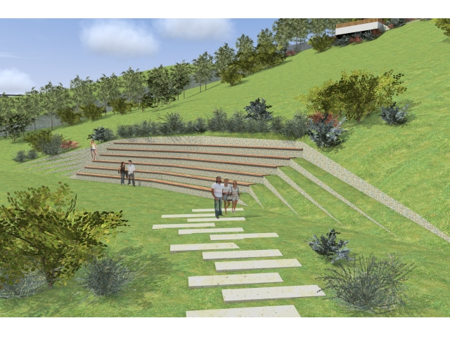 Proiectul cuprinde amenajarea zonei aflate la baza versantului pe partea opusă a dealului față de calea ferată Oradea – Cluj Napoca și a aleii de acces din strada Olteniei. Legătura dintre acesată zonă și baza versantului amenajat se face prin pasarela metalică existentă, ce traversează liniile de cale ferată, care urmează să fie și ea reabilitată. Proiectul cuprinde lucrări de stabilizare a terenului prin realizarea unor ziduri de sprijin din gabioane cu piatră naturală, realizarea unei infrastructuri cât mai facile pentru circulația pietonală, realizarea punctelor panoramice asupra habitatului creat și împrejurimilor, punctul principal fiind cel de alimentație publică și informare, și construirea în zona vestică a terenului a unui amfiteatru în aer liber.