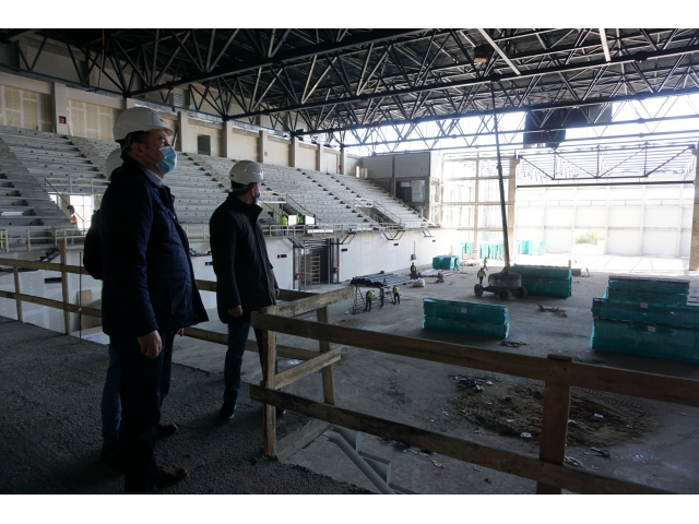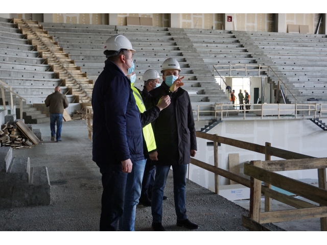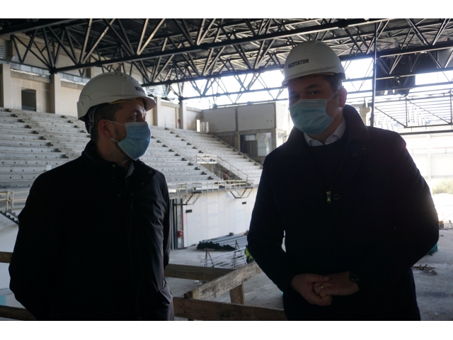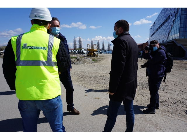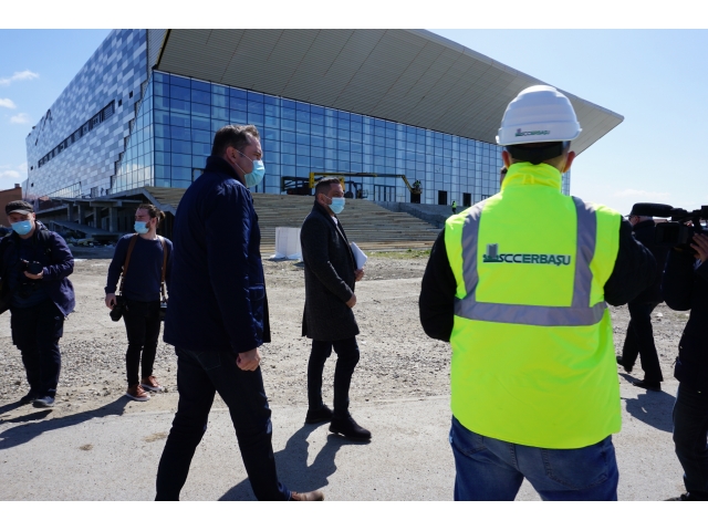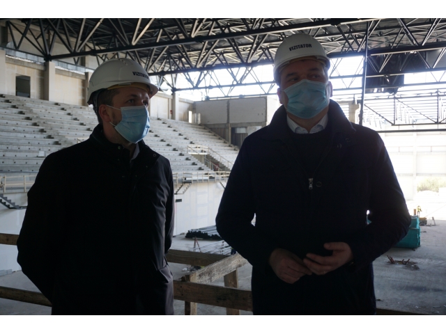 Primarul municipiului Oradea, Florin Birta, și ministrul Dezvoltării, Cseke Attila au făcut astăzi o nouă vizită pe șantierul sălii de sport polivalente, care a fost ridicată pe amplasamentul fostei piețe vechituri, lângă Aeroportul Oradea, vizavi de Cartierul Europa, între fostul tancodrom şi Era Shopping.
