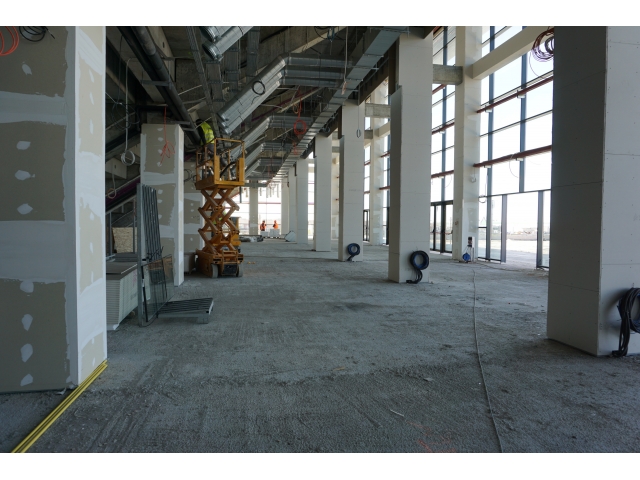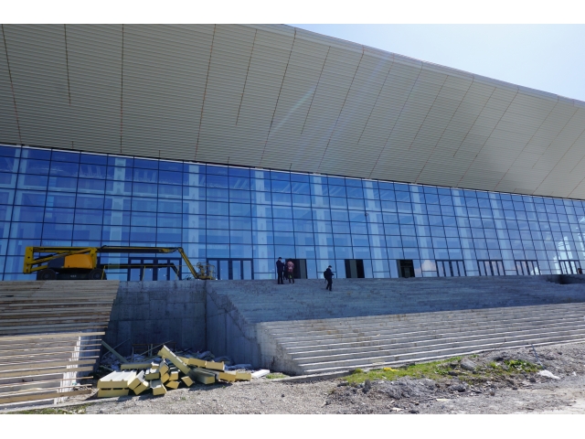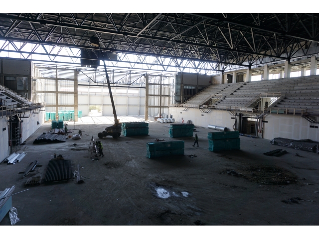 Până acum, în cadrul lucrărilor s-au finalizat structura de beton, structura metalică șarpantă, gradenele din beton, compartimentările interioare din BCA și ghips carton, s-a montat tâmplăria Cortina etc. De asemenea, instalațiile electrice și sanitare au fost finalizate și au fost turnate șapele în proporție de 50%.