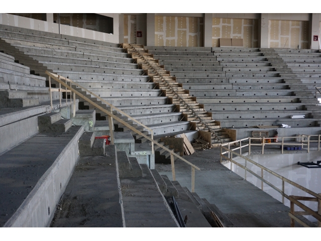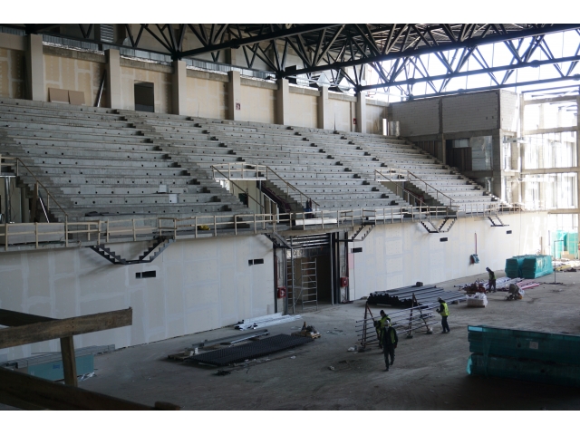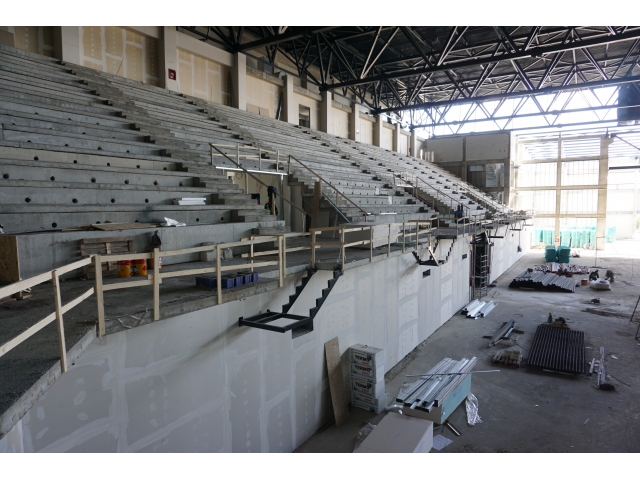 La fața locului au fost livrate în totalitate și scaunele din tribuna fixă și gradenele retractabile, dar și ușile metalice și cele rezistente la foc.