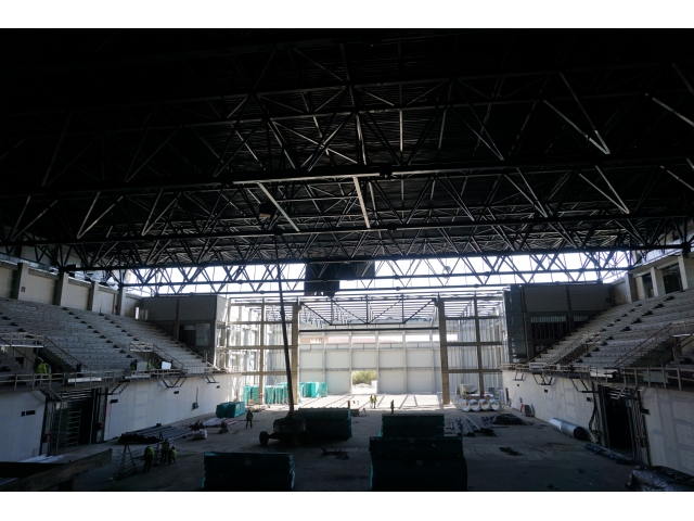 Construcția, cu o capacitate de 5.000 de locuri, este finalizată în proporție de 82%, urmând să fie predată beneficiarului, respectiv municipalității, la finalul lunii iulie.