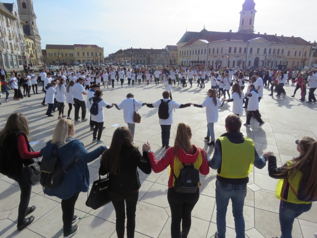 La propunerea European Down Sindrome Association (EDSA) acţiunea de ieri, 21 martie s-a desfăşurat, simultan, în mai multe orașe din România – Craiova şi Bacău și din Europa.