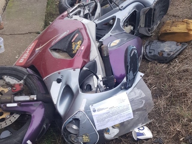 În urma verificărilor efectuate de către polițiștii locali din cadrul Direcției Poliția Locală Oradea, pe str. Ștefan cel Mare, nr. 13, a fost depistată o motocicletă de culoare roșie, fără număr de înmatriculare, marca Aprilia Racing, presupus abandonată sau fără stăpân.