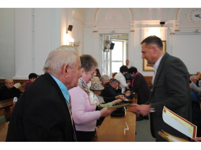 Cu această ocazie au fost invitate un număr de 59 familii, care şi-au sărbătorit ,,Nunta de aur”, acestea fiind felicitate de viceprimarul Huszar Istvan prin acordarea unei diplome de fidelitate, însoţită de un premiu în bani în cuantum de 500 lei.