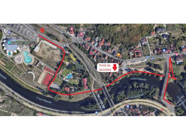 Orădenii pasionați de mersul pe bicicletă au acum la dispoziție noi tronsoane de pistă, ce facilitează trecerea de pe un mal pe altul al Crișului Repede. Este vorba despre amenajările destinate deplasării cu bicicleta pe relația aquapark Nymphaea – baza Dinamo – malul Crișului – zona Silvaș – Pod Constantin Prezan – Calea Clujului / Dragoș Vodă.