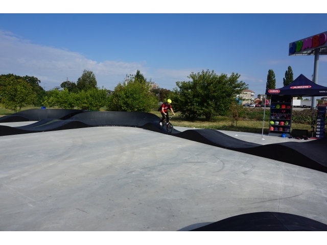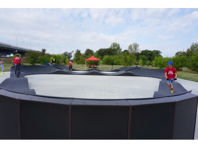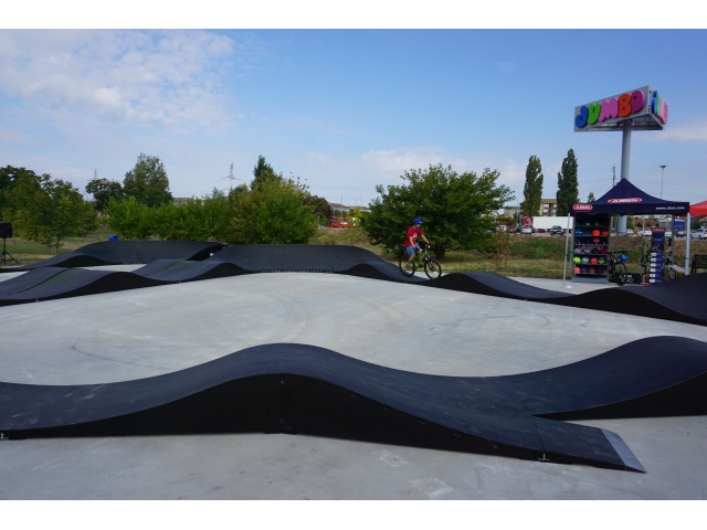 Pista pumptrack se află în zona Calea Aradului – în apropierea parcării magazinului Jumbo și are o lungime de 93 de metri, cu o capacitate de 9-10 persoane în aceeași tură, fie că este vorbă de bicicletă, role, trotinetă sau skateboard. Circuitul pumptrack modular din fibră de sticlă și panouri stratificate este compusă din două piste: Speedring (forma ovală) și Tristar (forma triunghiulară).