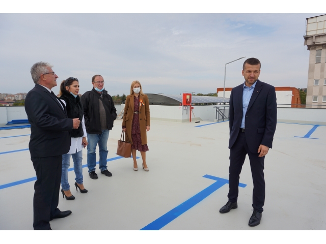 Viceprimarul Florin Birta împreună cu directorul Administrației Domeniului Public (ADP) Liviu Andrica au organizat azi, 12 octombrie, o conferință de presă în teren cu ocazia finalizării lucrărilor la parcarea supraterană de pe str. Brașovului