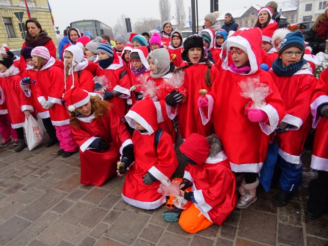 Vocile cristaline și vesele ale celor peste 400 de copii de la Liceul Greco-Catolic Iuliu Maniu din Oradea, îmbrăcați cu toții în costume de Moș Crăciun, au răsunat azi în fața Primăriei Oradea, unde au fost întâmpinați de viceprimarul Florin Birta și purtătorul de cuvânt al primăriei Oradea, Anca Grama.