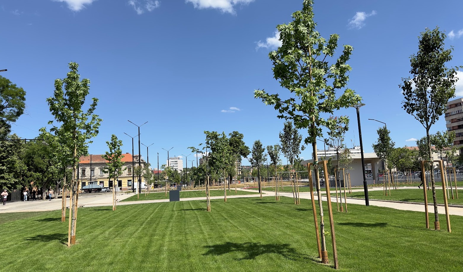 O suprafață de aproximativ 5000 mp a fost însămânțată cu gazon, toate suprafețele având sistem de irigație automatizat.