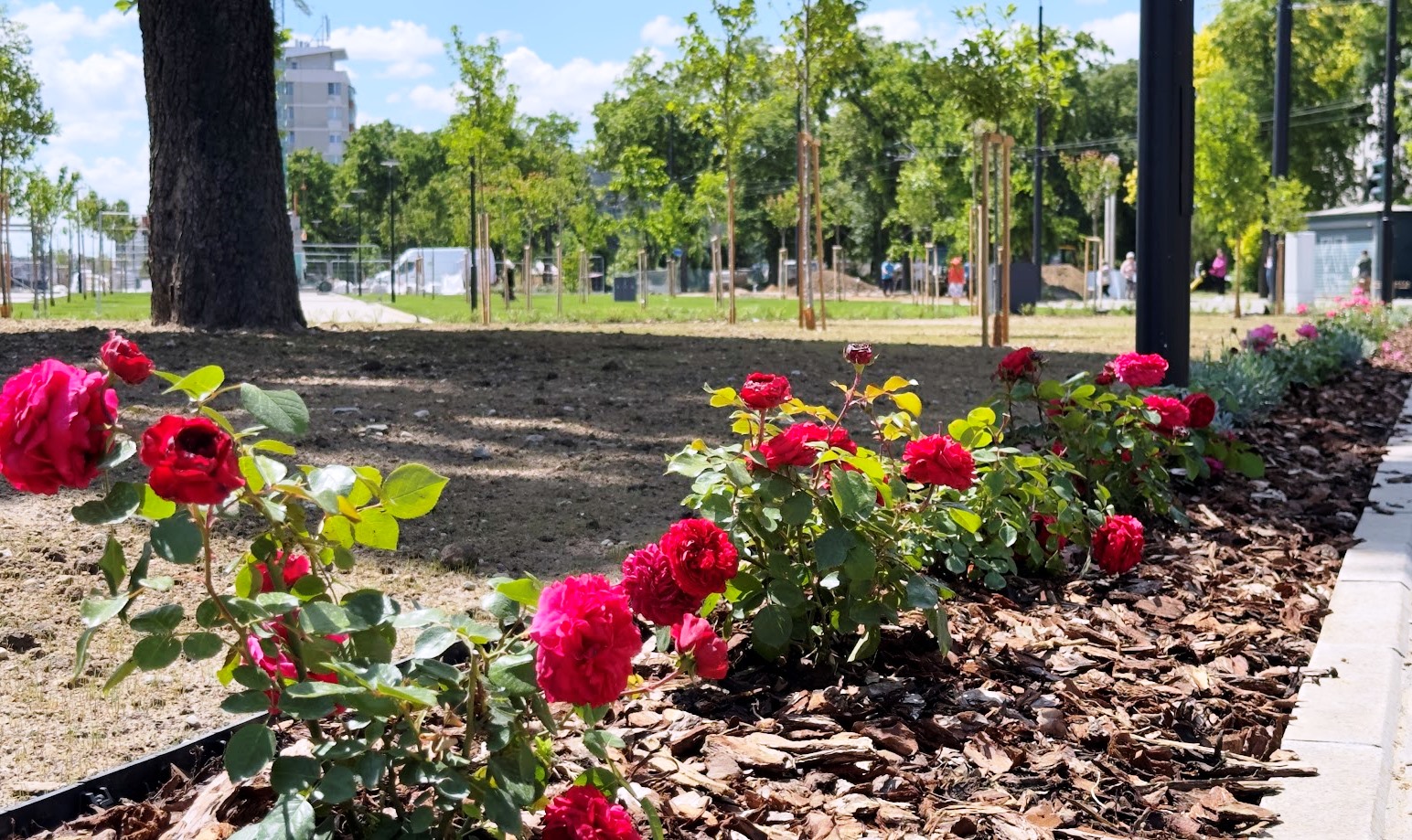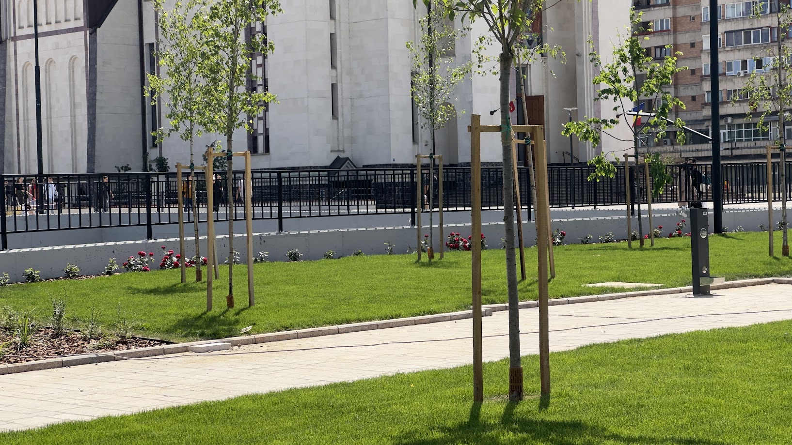 Privirea trecătorilor se va putea bucura de frumusețea cireșilor japonezi, mestecenilor argintii, magnoliilor, a tufelor de lavandă, crinilor de vară și a feluritelor specii de trandafiri.