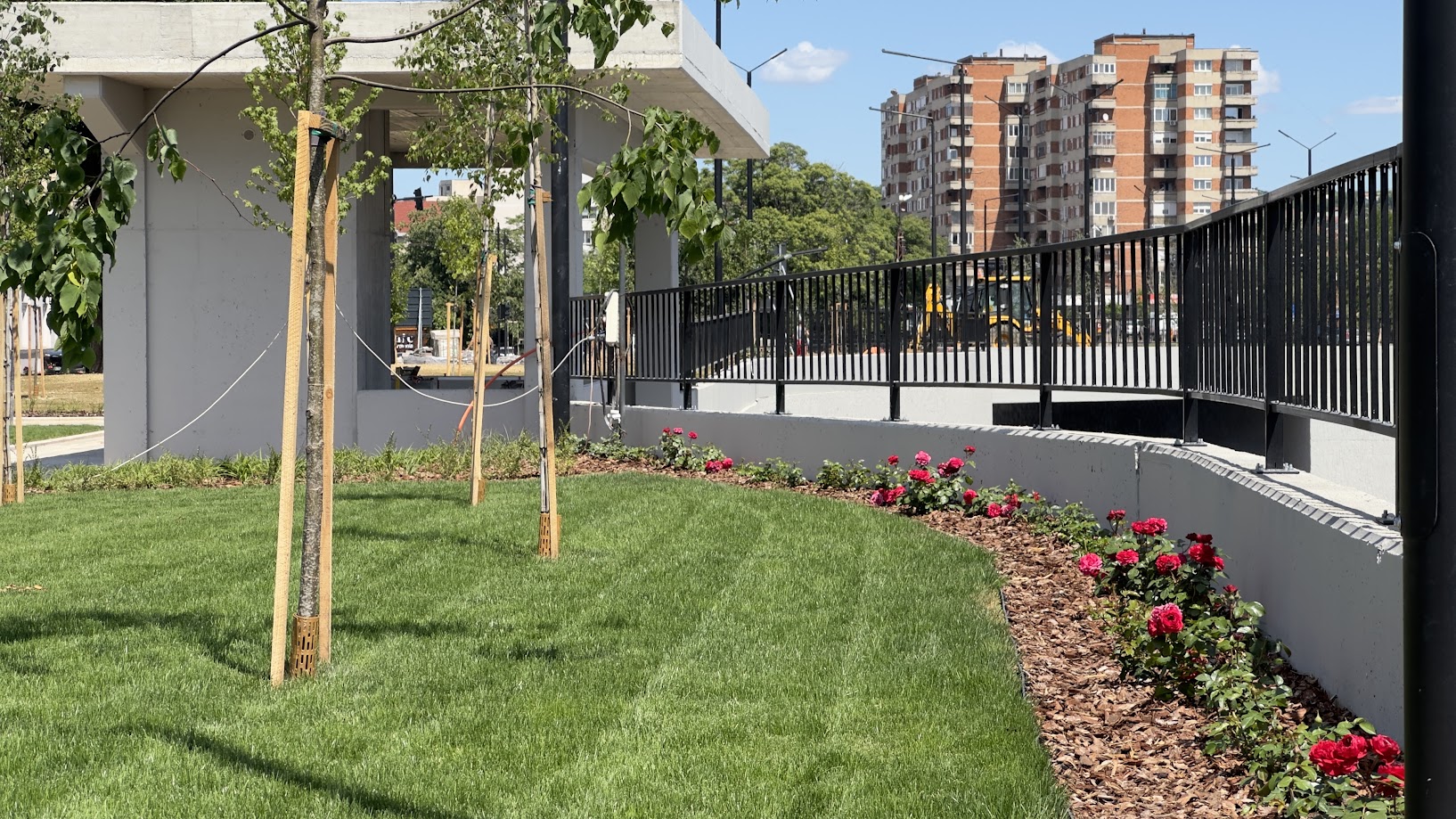 Amenajarea peisagistică a spațiilor verzi din zona piațetei pietonale de deasupra pasajelor dă culoare Centrului Civic, schimbându-i înfățișarea într-un loc cu verdeață, arbori, plante perene și diverse specii de trandafiri.