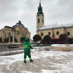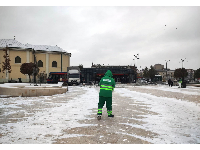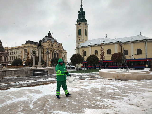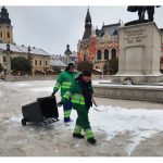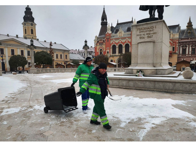Utilajele împrăștie sare, antiderapant lichid ClCa și antiderapant solid CL Mg. Acesta din urmă se folosește în zona centrală, respectiv Piața Unirii, Piața Ferdinand și piațeta de la Magazinul Crișul.