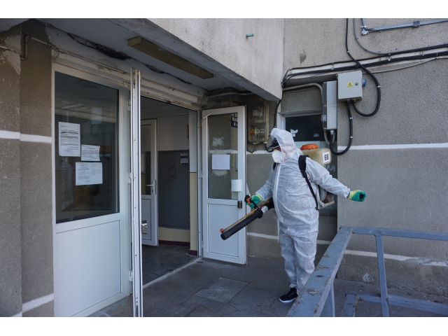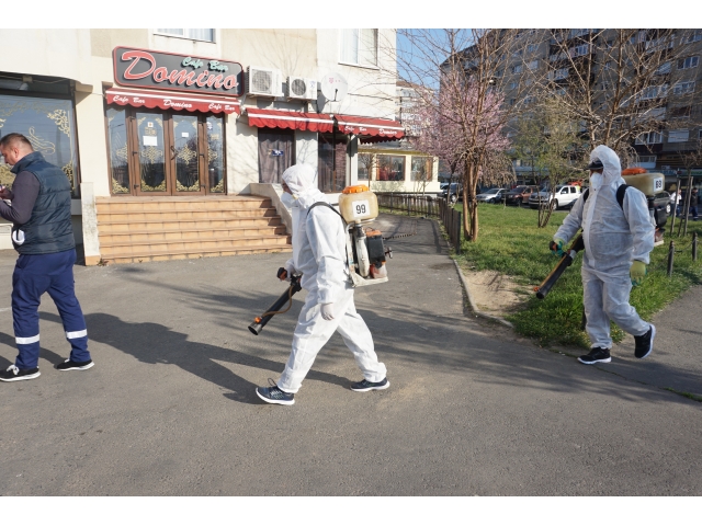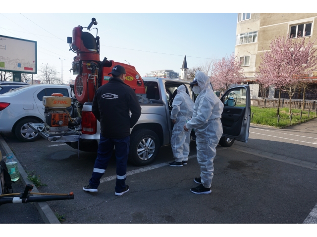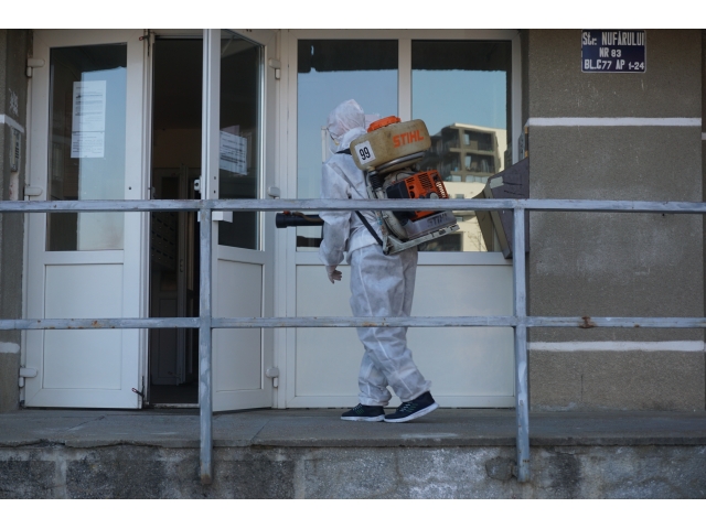 Fiecare din cele trei echipe de muncitori va efectua azi dezinfecția la un număr de 60 de scări de bloc, urmând ca la finalul zilei 180 de scări de bloc din Cartierul Nufărul să fie deja dezinfectate. După dezinfecția blocurilor din cartierul Nufărul, operațiunea va continua și în celelalte cartiere ale orașului.