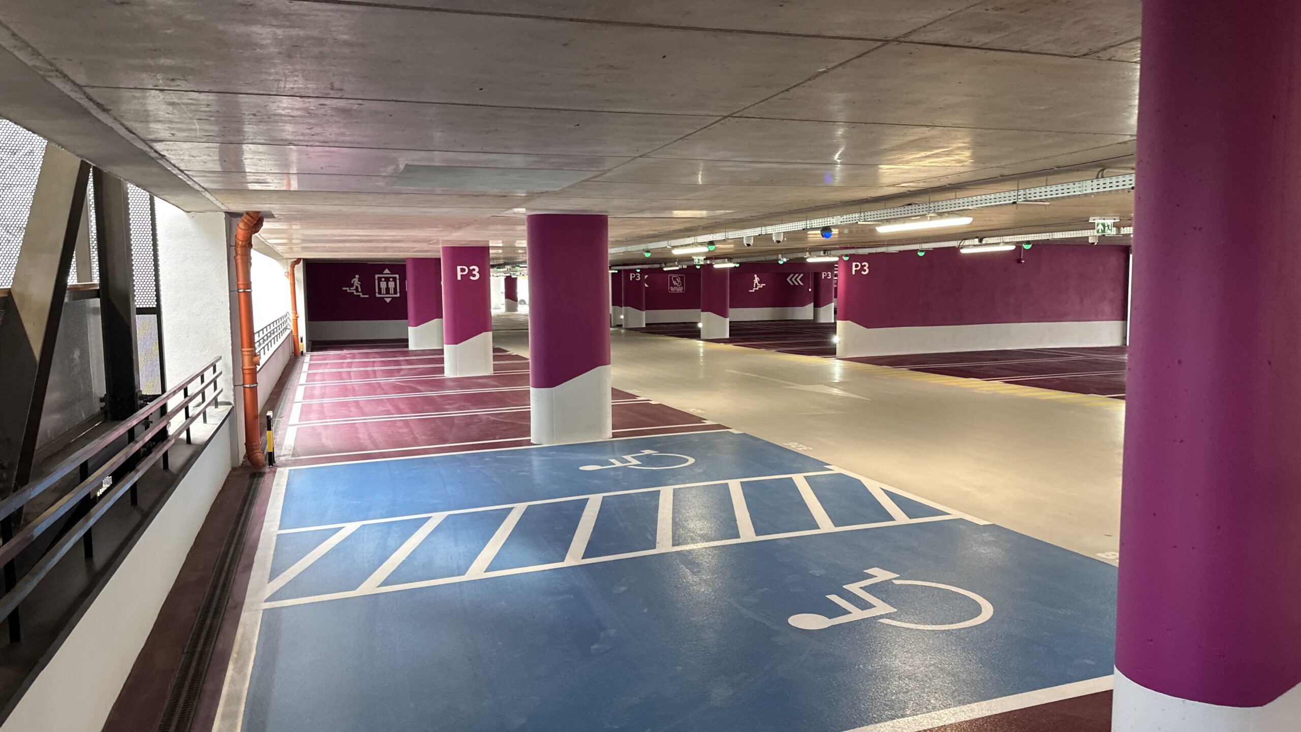 Noua parcare are un regim de înălțime de cinci niveluri (demisol, parter, două etaje și terasă), cu o înălțime totală de 14,5 metri, o lungime de 80 de metri și o lățime de 48 de metri. Suprafața desfășurată este de 17.500 mp. Capacitatea totală este de 516 locuri, dintre care 21 sunt dedicate persoanelor cu handicap, iar 10 sunt prevăzute pentru mașini electrice și dotate cu cinci stații de încărcare amplasate la etajul al doilea.