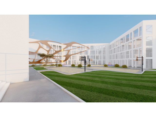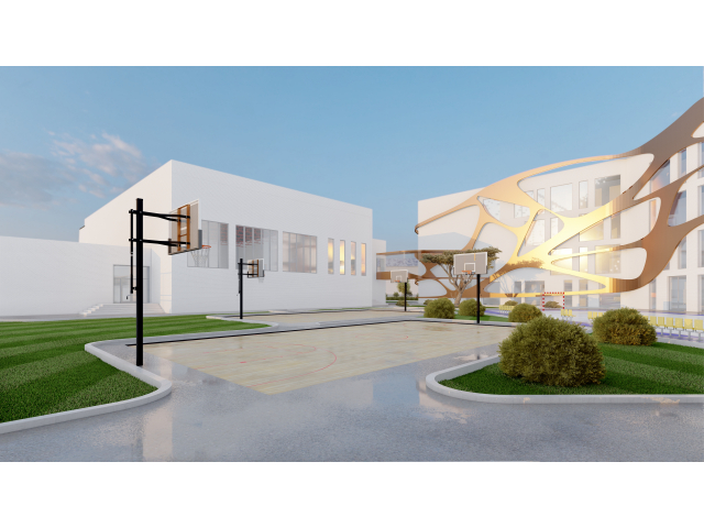 De asemenea, în incinta școlii se vor amplasa două terenuri de baschet, un teren de minifotbal și unul de handbal și se va amenaja un spațiu verde generos.