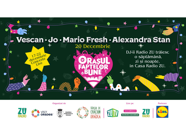 Târgul de Crăciun Oradea este pentru a treia oară gazdăpentru Orașul Faptelor Bune, organizat de Radio ZU cu sprijinul Visit Oradea șial Primăriei Municipiului Oradea.