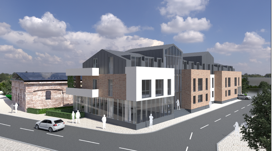Inițial prin PUZ-ul aprobat prin HCL nr. 50/2019 s-a propus reconversia acestei clădiri într-un bloc de locuințe cu 34 apartamente, însă în urma expertizelor tehnice s-a constatat că imobilul existent nu poate fi restructurat, motiv pentru care se propune demolarea în întregime și construirea unei noi clădiri pe același amplasament, dar cu amprentă mai mică la sol și regim de înălțime mai mare.