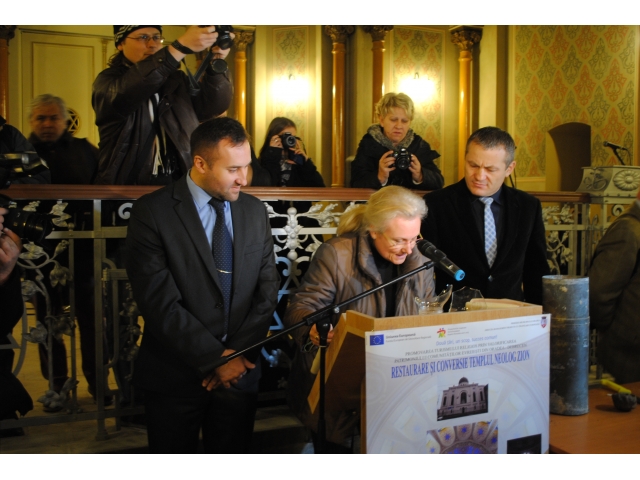 Cu privire la lucrările realizate, responsabilul de proiect arhitectul Cristian Puşcaş a spus: „Suntem la finalul unei investiţii de peste 1,25 milioane euro pentru partea română şi aproximativ de 250.000 euro pentru Comunitatea evreilor din Debreţin, partenerii noştri. Ceea ce vedem astăzi aici este puţin din ceea ce s-a făcut. În momentul preluării ei, în urmă cu doi ani, această sinagogă era în stare de pre-colaps. Dacă nu se intervenea atunci, la scurt timp tamburul cupolei şi cupola ar fi căzut pur şi simplu în interiorul sinagogii. Am reușit să intervenim în penultimul moment”.