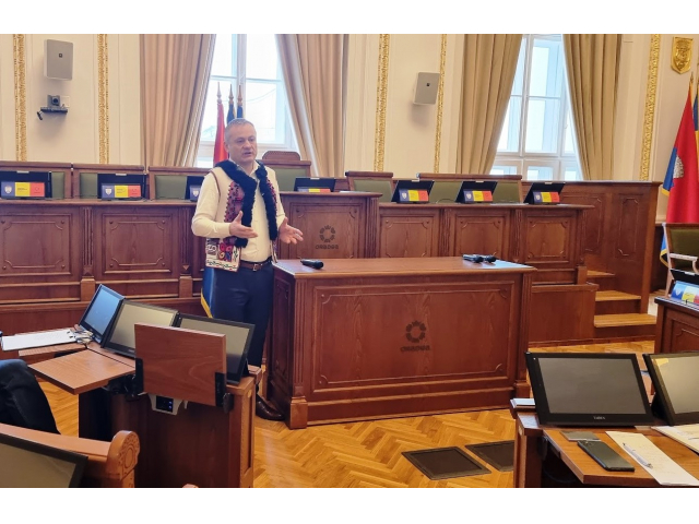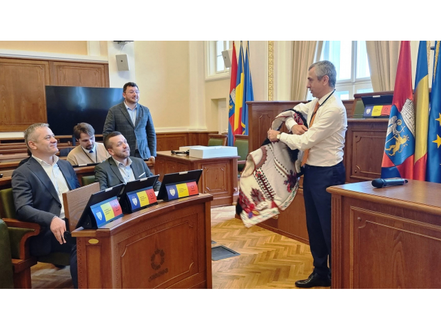 Mircea Mălan a prezentat delegației cojocul de Bihor, care a ajuns cunoscut în lume după ce a inspirat în chip original piesele vestimentare prezentate de o celebră casă de modă.