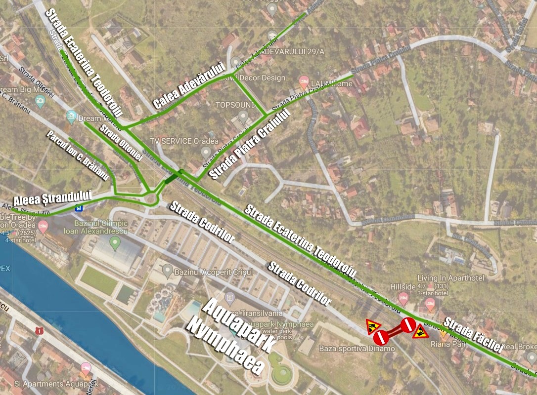 Iar circulația în zona pasajului de pe strada Codrilor (înspre Ștrand Dinamo și Aquapark Nymphaea) va fi închisă în perioada 14 -15 decembrie 2024. Cu precizarea că se va putea circula în continuare pe relația Făcliei – Ecaterina Teodoroiu, pe ambele sensuri de circulație.