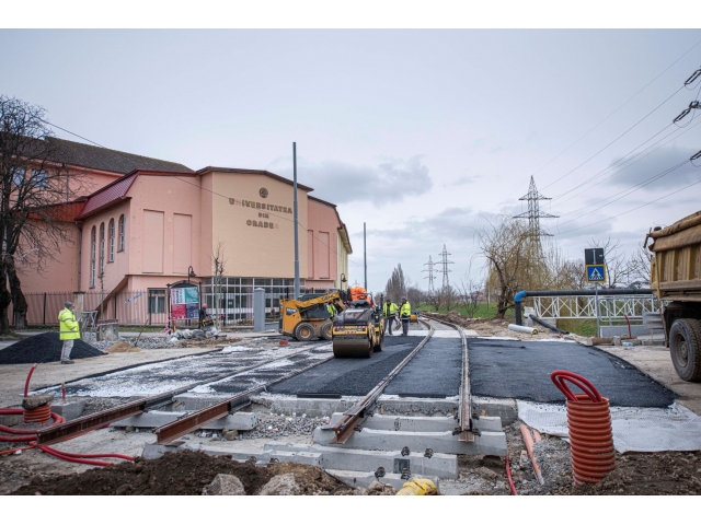 Circulația rutieră pe strada Universității a fost închisă începând cu 1 martie, pe o zonă de 50 m de la podul peste Peța spre Universitatea Oradea, fiind deviată înainte de podul peste Peța pe breteaua străzii Făgărașului, pe malul drept al pârâului Peța, iar pe cealaltă parte a străzii Universității fiind semnalizată înfundarea străzii de la sensul giratoriu de pe str. Ceyrat, propunându-se ca rută ocolitoare str. Ceyrat. În această perioadă, s-au executat lucrări de terasamente, pregătirea infrastructurii de tramvai, montarea traverselor și a șinelor, turnarea dalei de beton armat și asfaltarea străzii cu racordarea la calea rutieră existentă. Constructorul s-a angajat ca până în data de 20 martie să încheie lucrările la liniile de tramvai din dreptul podului, astfel că de sâmbătă se va putea redeschide circulaţia rutieră peste pod.